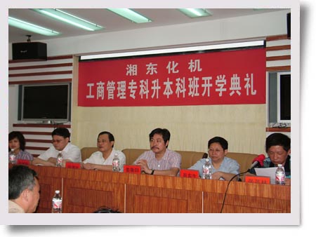 5月15日上午,公司在三樓培訓(xùn)室舉行了工商管理?粕究瓢嚅_(kāi)學(xué)典禮。南華大學(xué)繼續(xù)教育學(xué)院黨委書(shū)記、副教授胡滿生,經(jīng)濟(jì)管理學(xué)院院長(zhǎng)、教授肖東生,機(jī)械工程學(xué)院黨委書(shū)記、副教授彭新和,院辦主任黃澤民,招生辦主任陳夕軍,公司副總經(jīng)理姜衡陽(yáng)及人資處領(lǐng)導(dǎo)和41位學(xué)員參加了開(kāi)學(xué)典禮。 公司為全面提高員工素質(zhì)、提升企業(yè)檔次,多年來(lái)一直堅(jiān)持與南華大學(xué)聯(lián)合辦學(xué),走自己培養(yǎng)人才的道路,以適應(yīng)企業(yè)發(fā)展需求。去年聯(lián)合開(kāi)辦的機(jī)械制造專業(yè)專升本班的29名學(xué)員都以優(yōu)異成績(jī)?nèi)慨厴I(yè),拿到了本科文憑。今年初就制定了工商管理專業(yè)辦班計(jì)劃,經(jīng)過(guò)4個(gè)月的籌備,今天正式開(kāi)學(xué)了。 南華大學(xué)領(lǐng)導(dǎo)胡滿生、肖東生、彭新和都在會(huì)上講了話,他們介紹了南華大學(xué)、南華大學(xué)經(jīng)濟(jì)管理學(xué)院、機(jī)械工程學(xué)院的辦學(xué)情況,同時(shí)對(duì)辦好工商管理專升本班提出了目標(biāo)和要求。 副總經(jīng)理姜衡陽(yáng)在會(huì)上明確了辦班的宗旨和指導(dǎo)思想,對(duì)如何辦好專升本班提出了要求。他說(shuō),全體學(xué)員要珍惜學(xué)習(xí)的機(jī)會(huì),真正學(xué)到知識(shí)、學(xué)到本領(lǐng)。同時(shí)要正確處理好工作和學(xué)習(xí)的關(guān)系,做到工作、學(xué)習(xí)兩不誤、兩促進(jìn),把學(xué)到的知識(shí)應(yīng)用到工作中、實(shí)踐中,為把湘東化機(jī)建設(shè)的更加美好作出應(yīng)有的貢獻(xiàn)。(尹雄劍)