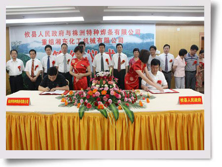 2011年6月2日,湘化機迎來了歷史性的一天。全體職工期盼已久的重組歷經(jīng)七年,終于在今天取得成功。株洲特種焊條有限公司在與攸縣人民政府多次磋商后,正式簽訂了重組湘化機的協(xié)議。 簽約儀式上,株洲特種焊條有限公司總經(jīng)理曾繼疆首先發(fā)言,對來到攸縣感到榮幸,表達了重組湘化機的決心和信心,表示將盡快把湘化機帶出困境,并為攸縣經(jīng)濟發(fā)展作出自己的貢獻;湘化機董事長兼總經(jīng)理蘇成隨后表態(tài):公司領(lǐng)導(dǎo)班子和全體職工將以更飽滿的熱情、更努力的工作,把湘化機做大做強,爭創(chuàng)化機行業(yè)一流,帶動攸縣縣域經(jīng)濟的發(fā)展;攸縣縣委書記鄺鄒飛最后發(fā)言,對曾總重組湘化機表示了感謝和敬意,并請曾總能集中精力和財力,按照“三年五個億,五年十個億”的目標,把湘化機迅速做大做強。同時,要求攸縣各相關(guān)部門對于湘化機下一步的工作必須不遺余力地予以支持,優(yōu)化企業(yè)發(fā)展環(huán)境,共同把湘化機打造成全國一流的化工裝備制造企業(yè)。 重組之后,制約公司發(fā)展的資金問題將會徹底解決,正是大展拳腳的機會,各項工作將緊張有序地全面展開。全體職工要改變精神面貌、轉(zhuǎn)變觀念,一切以效率為先,齊心協(xié)力,再創(chuàng)湘化機的輝煌。