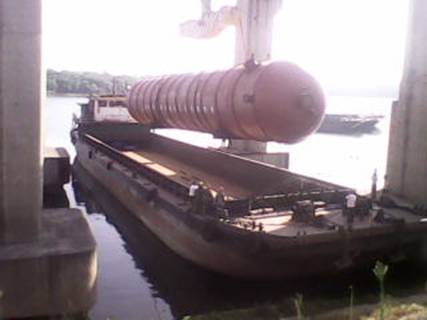 日,在湖南衡陽白沙洲千噸級碼頭,由我公司制造完工的上海金山石化項目丙烯塔順利發(fā)貨。該設備共兩臺,每臺總長度為